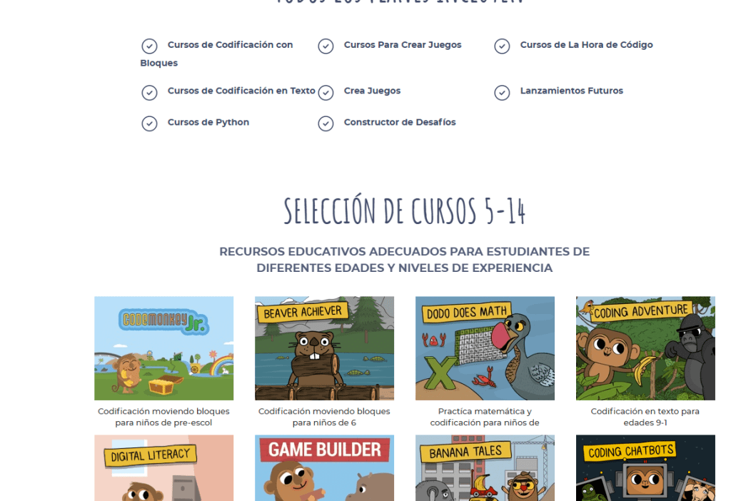 En CodeMonkey los niños aprenden programación mientras juegan. Deben usar bloques o escribir instrucciones en un entorno tipo juego para que un personaje realice acciones (como moverse, recolectar ítems o resolver desafíos). A través de esto, los niños desarrollan pensamiento lógico, secuenciación y habilidades básicas de programación sin necesidad de experiencia previa.